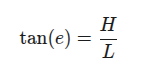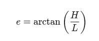 Jedná se o pravoúhlý trojúhelník, kde známe dvě odvěsny (H a L) a hledáme přilehlý úhel, podle vzorce: