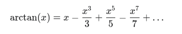 V 17. století několik matematiků nezávisle na sobě přišlo na to, že funkci arctan lze vyjádřit součtem nekonečné číselné řady