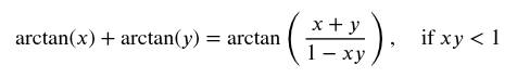 Pak vypočítáme arctan pro tuto hodnotu a pro 0.5 a oba výsledky sečteme. Není to úplně nejjednodušší cesta, ale stále se dle mého názoru pohybujeme na úrovni, která se dá zapamatovat a dá se vypočítat ručně.