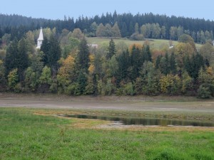 Extrémní sucha letošního léta způsobila pokles hladiny v Šancích až o devět metrů. Na Samčance je místo jezera zase údolí, kterým teče Ostravice, vlévá se do ní potok, jsou vidět mosty u křižovatky železnice a cesty Samčanka – Jamník a těleso silnice a železnice z Ostavice směr Bílá.